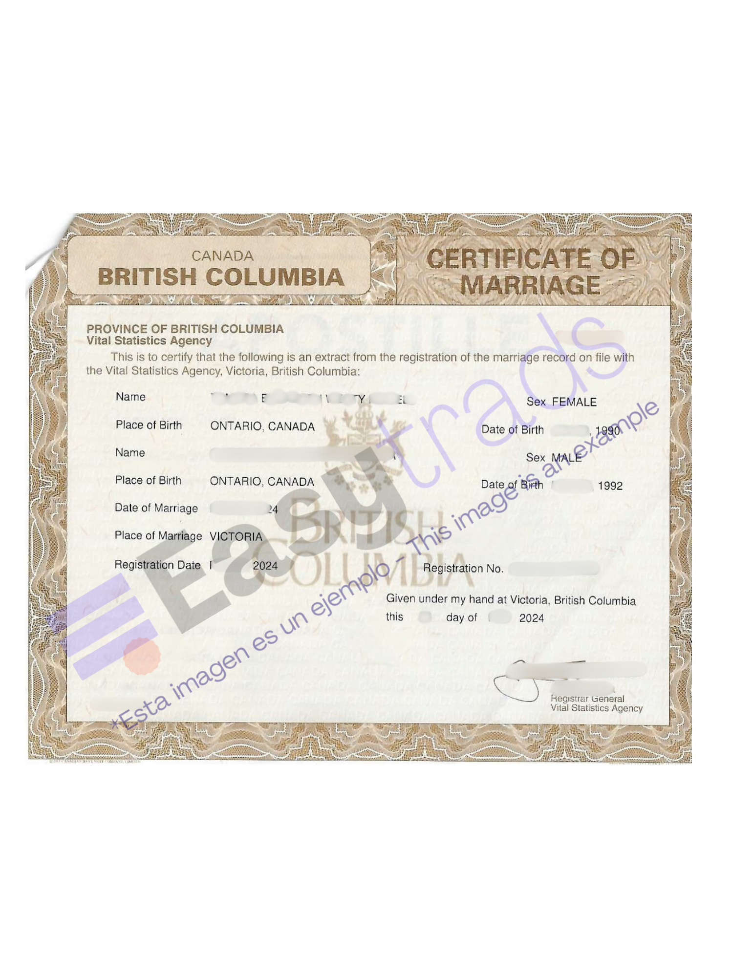 Obtén la traducción jurada oficial de tu certificado de matrimonio de Canadá del Inglés o Francés a Español realizada por traductores jurados.